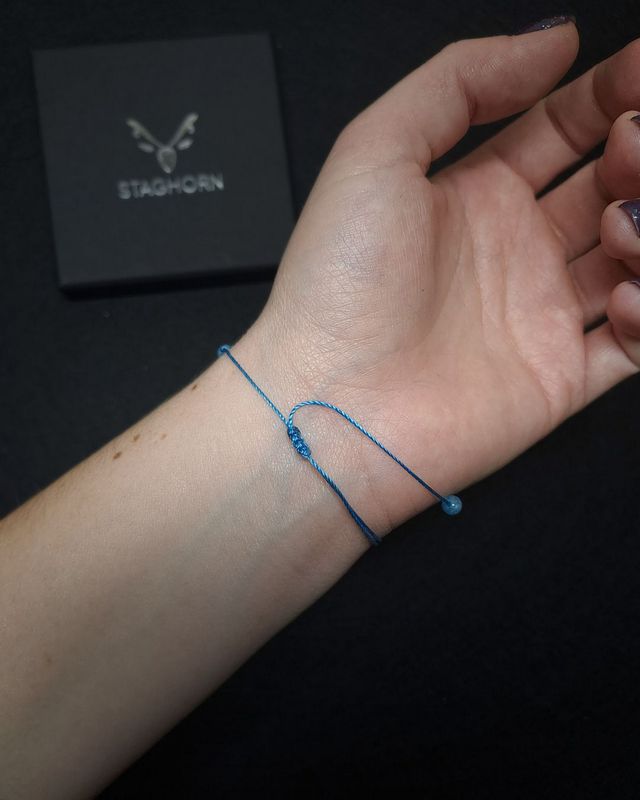 - Błękitny sznurek makramowy z regulacją — wygodny, trwały i łatwy do dopasowania.