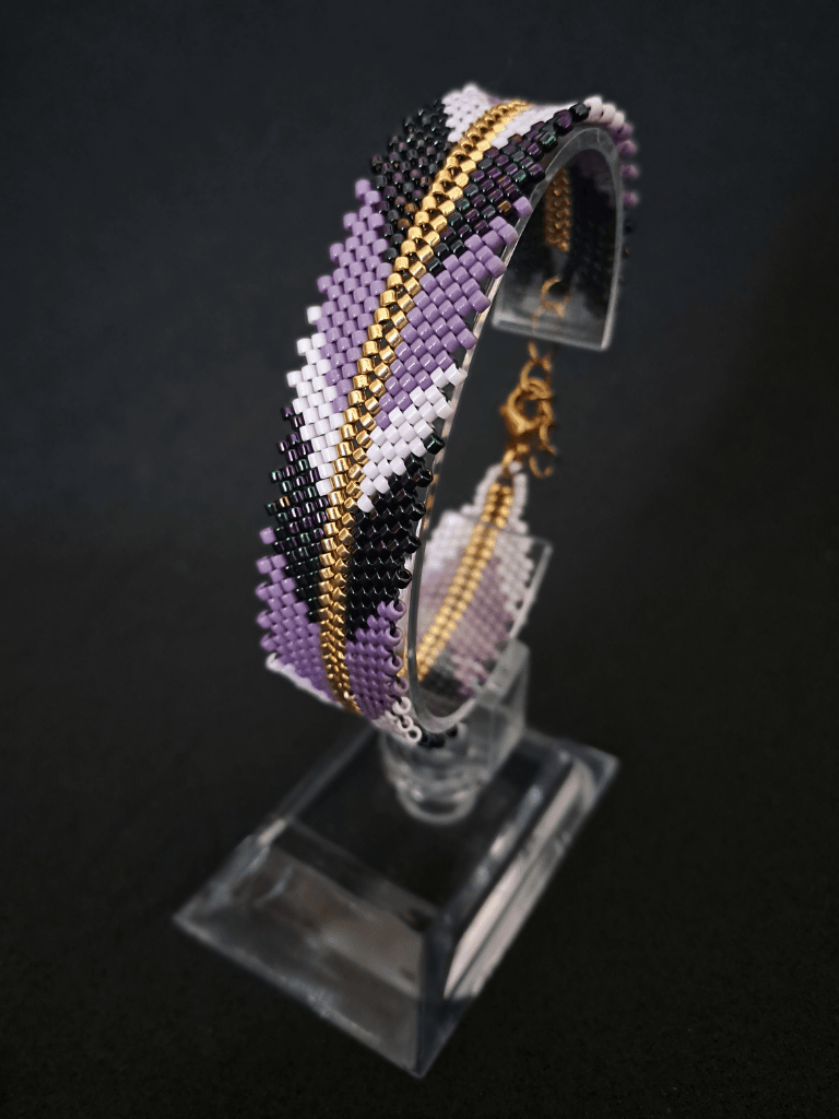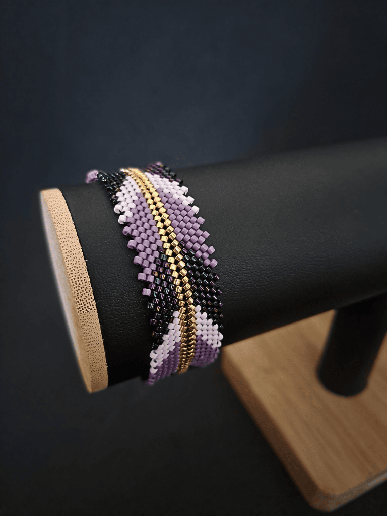 Każda bransoletka jest misternie wykonana ręcznie z precyzyjnych koralików Miyuki Delica – znanych z idealnego kształtu, a także trwałości. Staranna kompozycja kolorów oraz złote akcenty sprawiają, że ten dodatek to małe dzieło sztuki.