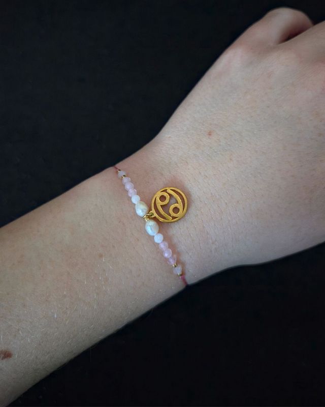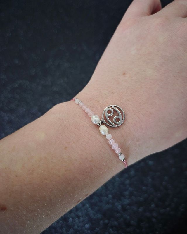 Minerały użyte w tej bransoletce wspierają emocjonalną głębię, czułość i intuicję Raka: