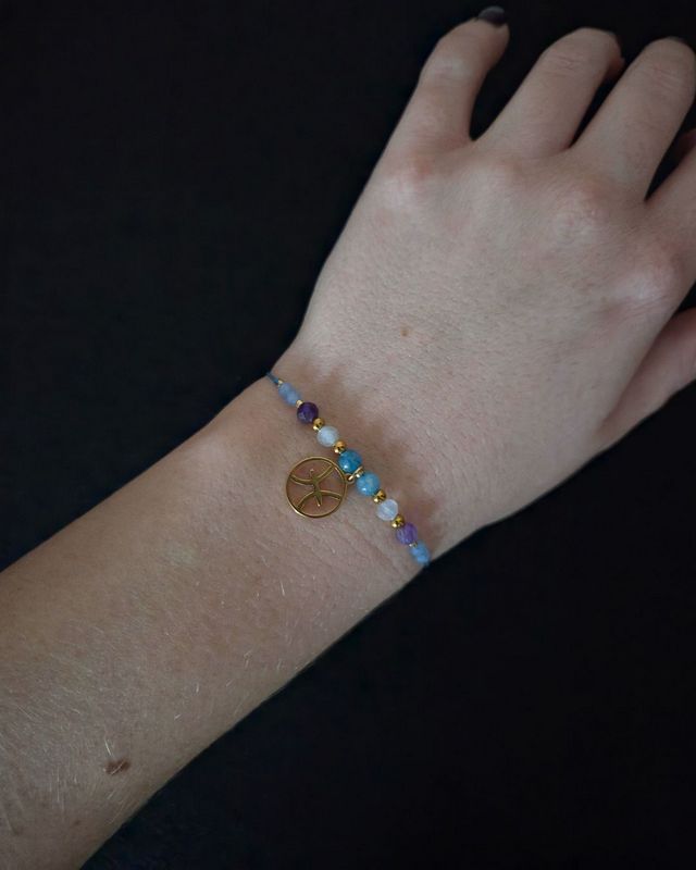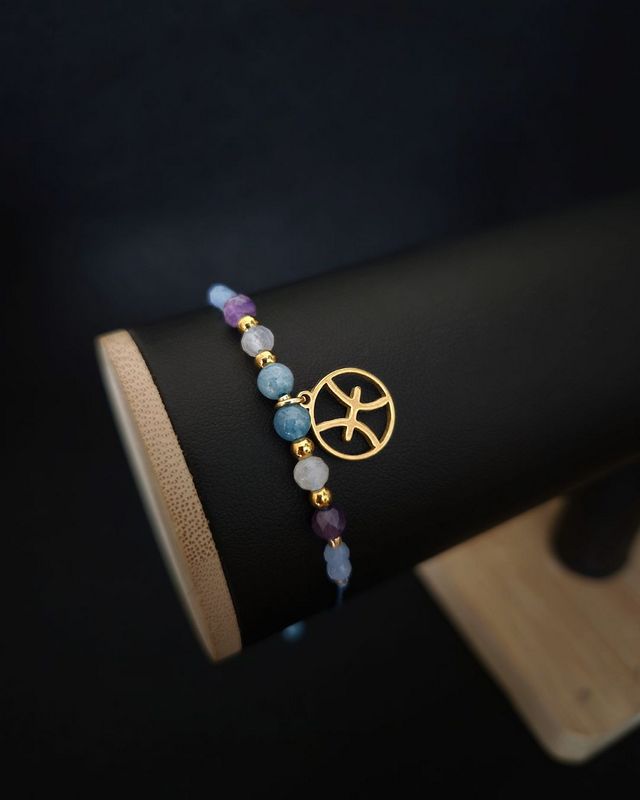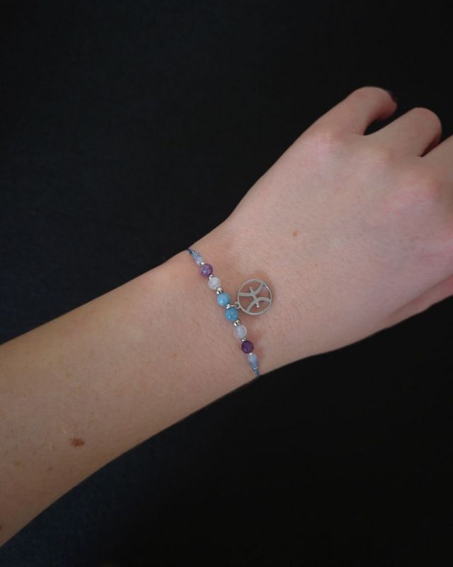 Minerały w tej bransoletce zostały dobrane tak, by harmonijnie współgrać z wrażliwą naturą Ryb: