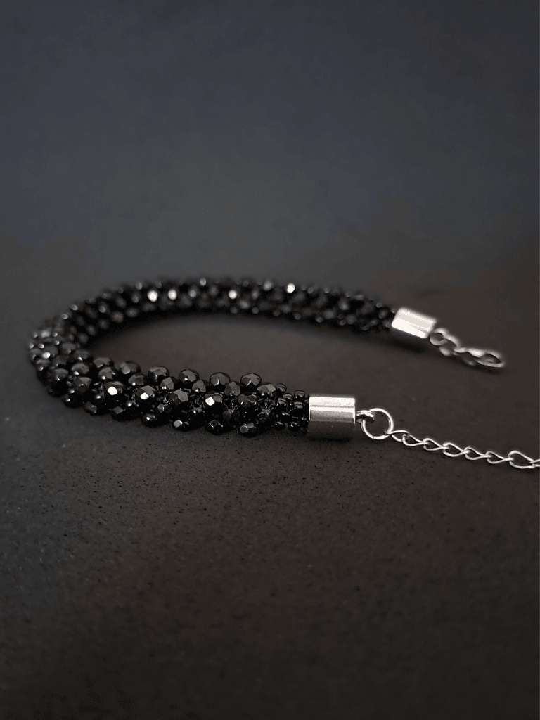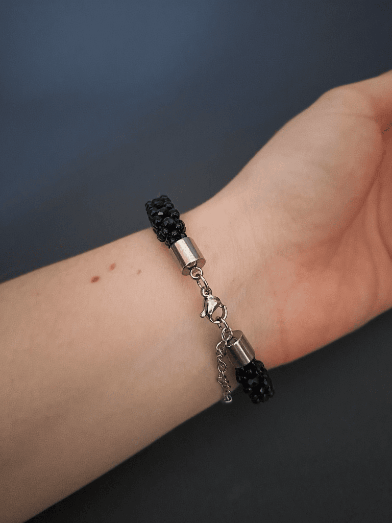 Twoje dodatki to coś więcej niż ozdoba – to sposób na wyrażenie siebie. Czarna bransoletka z kryształków Fire Polish to jak szept elegancji, który otula każdą stylizację nutą wyrafinowania. Blask czeskich kryształków łączy się tu z ponadczasową czernią, tworząc biżuterię, która zachwyca na każdym kroku. To rękodzieło, które podkreśla Twoją indywidualność i dodaje blasku każdej chwili – od codziennych zadań po wyjątkowe okazje.