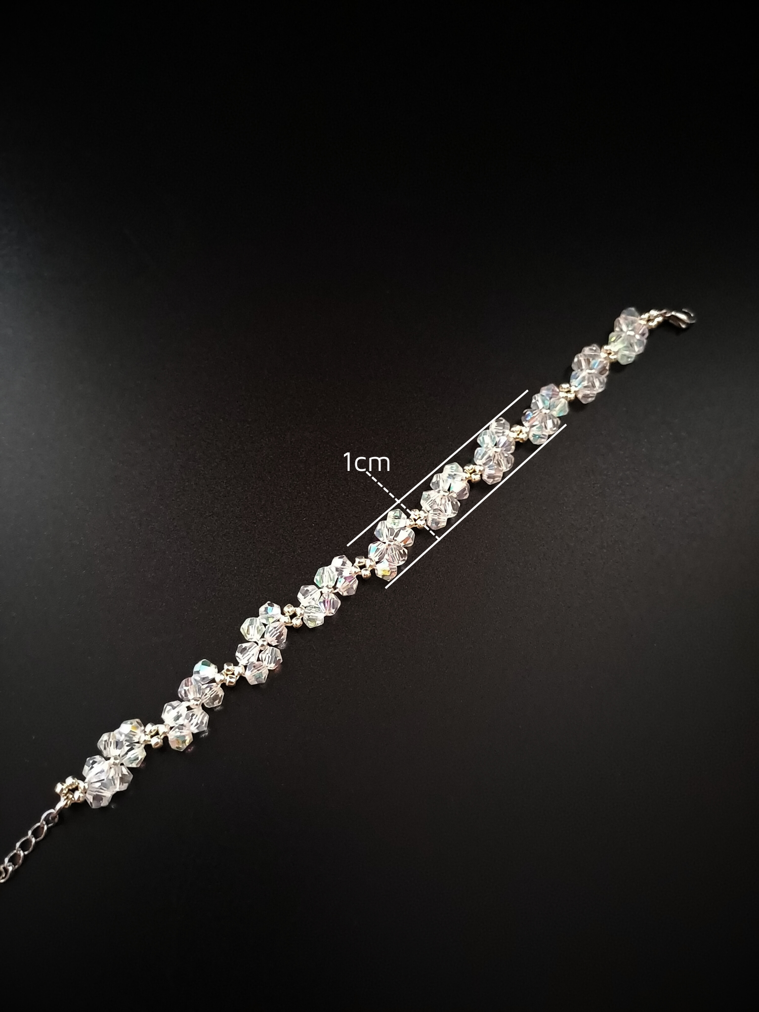 Choć ta bransoletka emanuje luksusem dzięki delikatnemu designowi i lśniącym kryształkom Crystal AB, pozostaje przystępną opcją dla osób poszukujących elegancji bez nadmiernego wydawania pieniędzy. Wykorzystanie szklanych kryształków jest doskonałą alternatywę dla droższych materiałów. Oferują ten sam urzekający blask w bardziej przystępnej cenie.