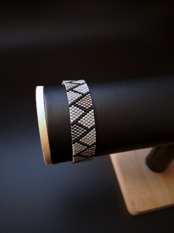 Bransoletka z tego zestawu to delikatny akcent, który przyciąga wzrok w najpiękniejszy sposób. Wyobraź sobie jej smukłą szerokość, 1,3 cm czystej harmonii, gdzie szarość spotyka się z głębią czerni i subtelnym błyskiem srebra. Nosząc ją, poczujesz się jakbyś miała na nadgarstku nie tylko biżuterię, ale artystyczną wizję zapisaną w koralikach. To bransoletka, która nie krzyczy, a jedynie szepcze: „Zobacz, jak piękne mogą być detale”. Idealna na co dzień, aby przypominać Ci o Twojej wyjątkowości, i na szczególne okazje, gdy potrzebujesz czegoś naprawdę wyjątkowego.
