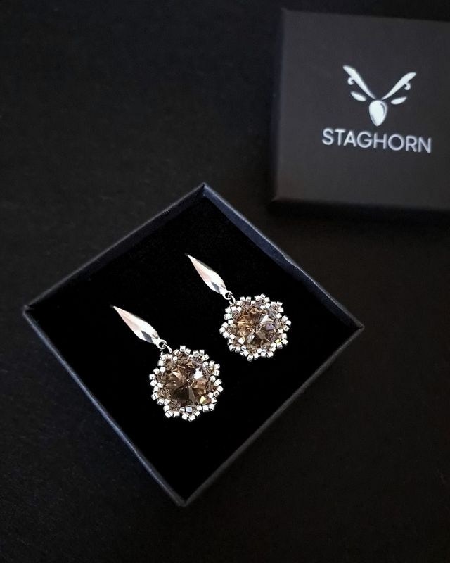 Wyobraź sobie nocne niebo pełne srebrzystych refleksów – tajemnicze, eleganckie i niepowtarzalne. Tak właśnie lśnią kolczyki Black Diamond z serii Crystal Maxima. Centralny kryształ Preciosa Rivoli Maxima w odcieniu Black Diamond odbija światło niczym gwiazda, otoczona delikatnym splotem koralików Miyuki i błyszczących kryształków Preciosa. To biżuteria, która nie tylko zdobi – ona magnetyzuje i sprawia, że czujesz się absolutnie wyjątkowa.