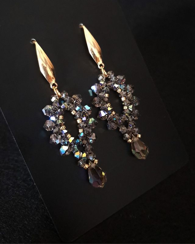 Kolczyki Black Diamond Glow – z kryształków Preciosa w graficie i złocie
