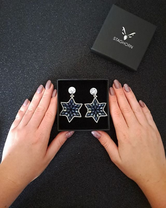 Niebo po zmroku. Cisza, która nie jest pusta, tylko pełna. Głębia, która przyciąga spojrzenia. Jeśli biżuteria mogłaby opowiedzieć o nocnym niebie, to zrobiłyby to właśnie te kolczyki – Midnight Star. Ręcznie wykonane z koralików w odcieniach granatu, opalizujących błękitów i srebra, w kształcie gwiazd, które – choć małe – mają swoją grawitację.