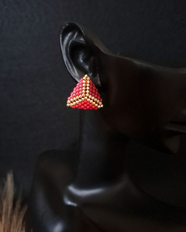 Są małe, ale mówią wiele. Kolczyki Red Triangle Chevron to biżuteria dla kobiet, które nie boją się koloru, ale szukają elegancji – nie przesady. Ręcznie wykonane z japońskich koralików Miyuki Delica, łączą głębokie odcienie czerwieni z ciepłym złotem i stonowanym brązem. To kolczyki stworzone na jesień – i na każdy dzień, w którym chcesz poczuć się silna, stylowa i obecna.