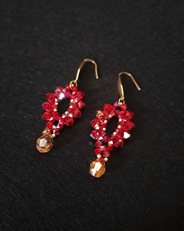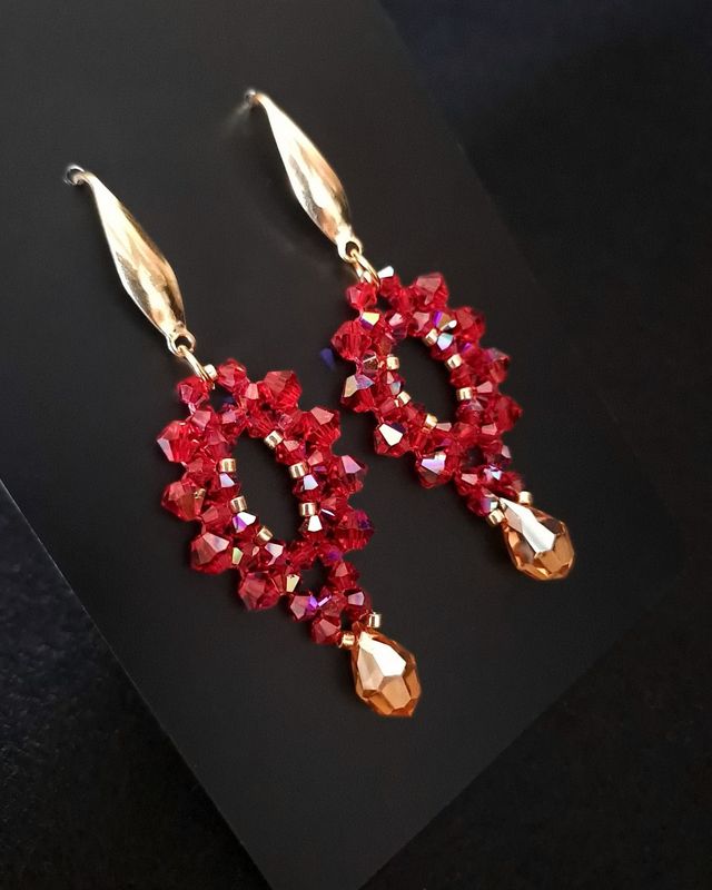 Kolczyki Siam Ember – z kryształków Preciosa w czerwieni i złocie