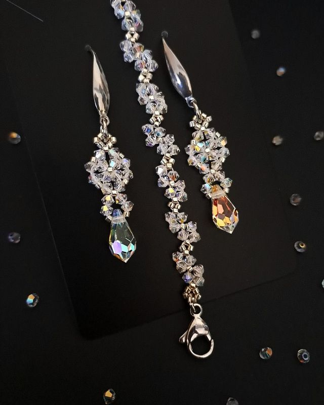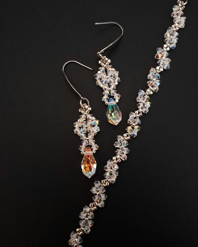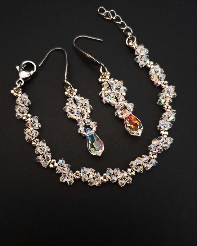 Ręcznie wykonana bransoletka i kolczyki z kryształków Preciosa Crystal AB opalizują w świetle – raz chłodnym, raz ciepłym. To właśnie ich sekret. Nie da się ich jednoznacznie opisać – ale łatwo się w nich zakochać.