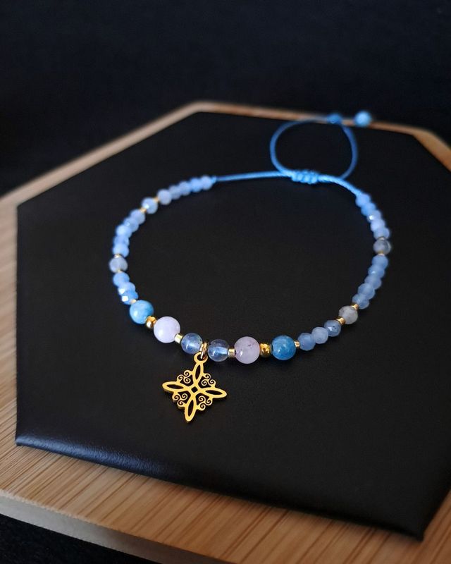 Zestaw „Aurora Dream” łączy subtelność kolorów świtu z energią kamieni naturalnych. Ręcznie wykonane bransoletki w delikatnych tonach różu, błękitu i szarości przypominają pierwsze światło dnia rozlewające się po niebie. Złote akcenty nadają całości ciepło i blask, tworząc biżuterię o marzycielskim, spokojnym charakterze.