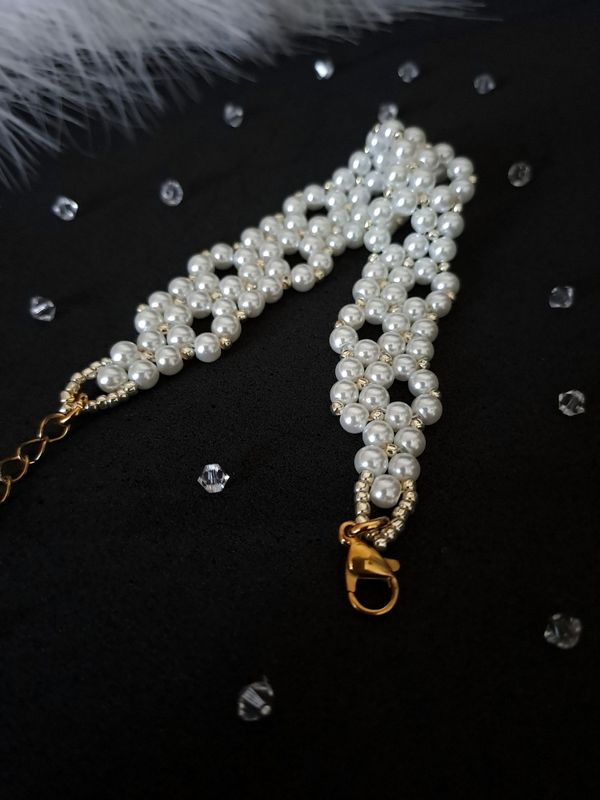 Każda chwila zasługuje na blask, który zostanie zapamiętany na długo. Ten perłowy zestaw biżuterii – bransoletka i kolczyki – to coś więcej niż tylko dodatek. To biżuteria, która otula Cię subtelnym blaskiem, podkreślając Twój wyjątkowy styl i osobowość. Czy to w dniu ślubu, podczas zaręczyn, czy na wieczorze panieńskim – ten zestaw sprawia, że każda kobieta poczuje się wyjątkowa, emanując niepowtarzalnym urokiem. Biało-złote perełki mienią się, przyciągając spojrzenia, a Ty czujesz się gotowa, by wkroczyć na scenę swoich najważniejszych momentów.