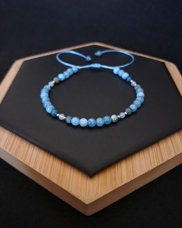 - Bransoletka z kamieni: akwamaryn i apatyt; drobne przekładki ze stali nierdzewnej.