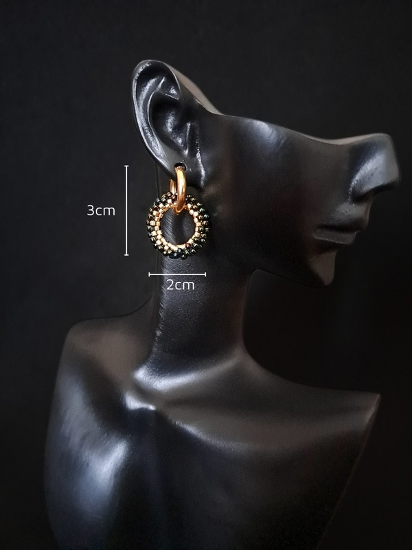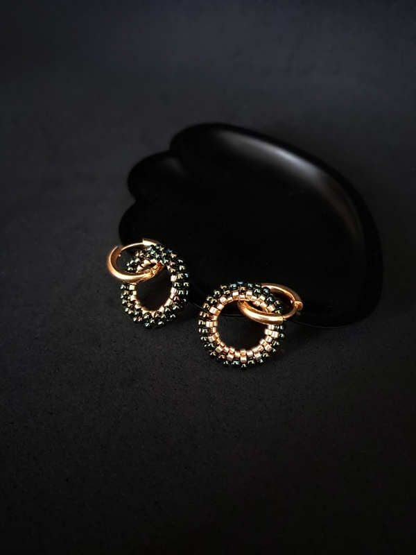 Motyw koła to klasyka, która nigdy nie wychodzi z mody. Symbolizuje harmonię, pełnię i nieskończoność, a w tych kolczykach zyskuje nowoczesną odsłonę. Zielone koraliki, które subtelnie odbijają światło, nadają im życia i głębi. To idealne połączenie klasycznego designu z nutą nowoczesności, które sprawi, że poczujesz się pewnie i wyjątkowo.
