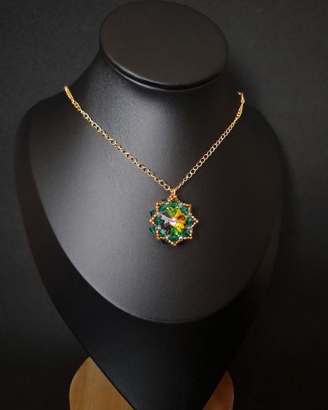 Zielono-Złoty Naszyjnik „Vitrail Crystal Maxima”