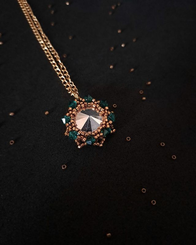 Naszyjnik „Vitrail Maxima” to efekt pracy pełnej pasji i precyzji. Ręcznie oplecione kamienie, lśniące różnymi odcieniami, to wyraz kunsztu i miłości do piękna. W świecie masowej produkcji ta biżuteria wyróżnia się nie tylko swoim wyglądem, ale także duszą. Nosząc naszyjnik, nosisz część tej historii – opowieść o tradycji, rzemiośle i ponadczasowej elegancji.